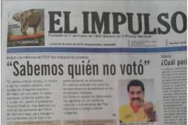 En la fotografía montada en la red social de la exdiputada a la Asamblea Nacional (AN,) se observa la portada del diario larense donde supuestamente titula una noticia en su portada “sabemos quién no votó” relacionándola con el presidente de la República, Nicolás Maduro.